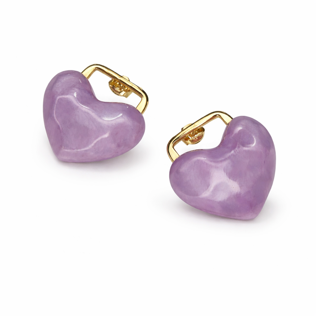 Σκουλαρίκια καρδιά λιλά με χρυσές λεπτομέρειες