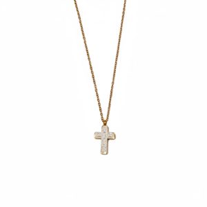 Ατσάλινο Κολιέ με Μικρό Σταυρό Στρας – Χρυσό