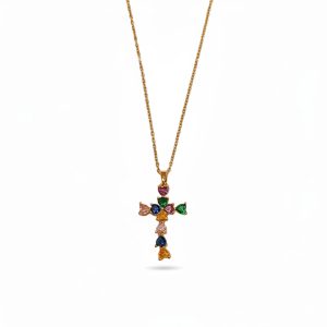 Ατσάλινο Κολιέ με Κρεμαστό Σταυρό Πολύχρωμες ή Διάφανες Πέτρες – Ασημί Άσπρο