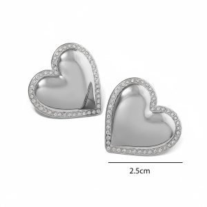 Σκουλαρίκια Καρδιά Στρας από Ατσάλι Ασημί