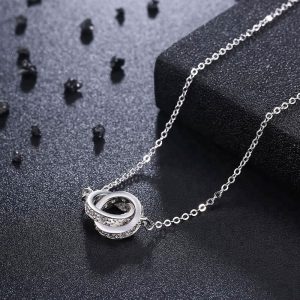 Κολιέ Απο Ασήμι S925 Διπλός Κρίκος Με Πέτρες Ζιργκόν