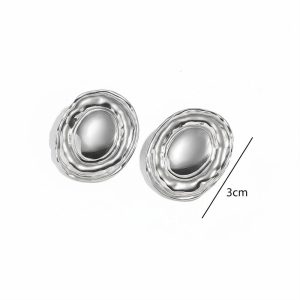 Ατσάλινα Σκουλαρίκια Κυματιστό Οβάλ Ασημί Χρώμα