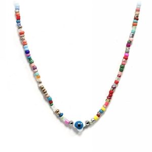 Κολιέ Ατσάλι 316L, αλυσίδα με διάφορες πέτρες και μάτι σε χρώμα Ασημί