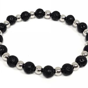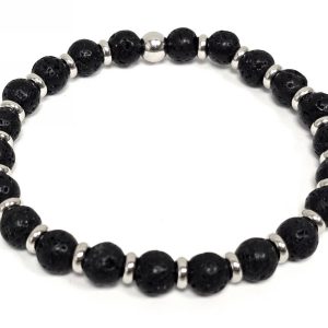 Βραχιόλι Πέτρα λάστιχο, 6# λάβα και ατσάλινα στοιχεία σε χρώμα Ασημί