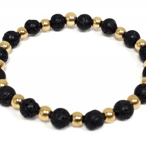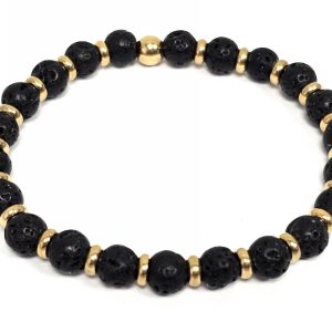 Βραχιόλι Πέτρα λάστιχο, 6# λάβα και ατσάλινα στοιχεία σε χρώμα Χρυσαφί