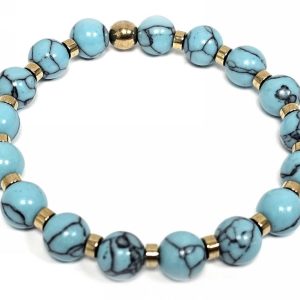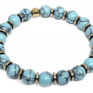 Βραχιόλι Πέτρα λάστιχο, 8# τυρκουάζ, και στοιχεία από αιματίτη σε χρώμα Χρυσαφί