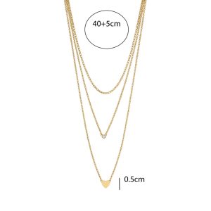 Κολιέ Ατσάλι Τριπλής Σειράς με Καρδιά & Ζιργκόν - ΧρυσόA3892A