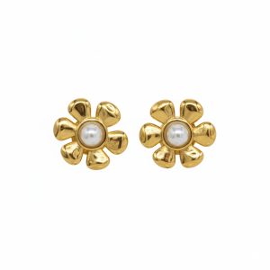 Σκουλαρίκια Ατσάλι Λουλούδι με Πέρλα - ΧρυσόA1226A