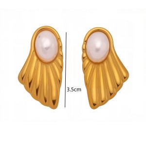 Σκουλαρίκια Ατσάλι Πέρλα σε Ανάγλυφο Κύμα - ΧρυσόA1199A