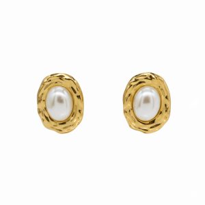 Σκουλαρίκια Ατσάλι Οβάλ Μαργαριτάρι - ΧρυσόA1228A