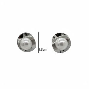 Σκουλαρίκια Ατσάλι Πέρλα σε Ανάγλυφο Κύμα – Ασημί