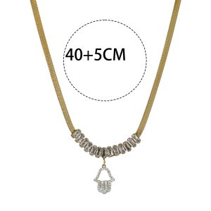 Κολιέ Χέρι Φατίμα από Ατσάλι με Κρύσταλλα - Χρυσόx00396A