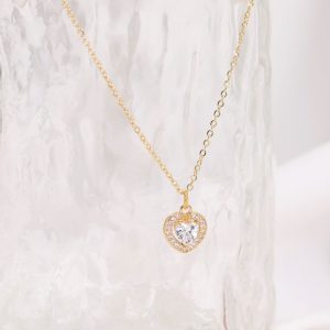Ατσάλινο Κολιέ Καρδιά με Ζιργκόν – Χρυσό