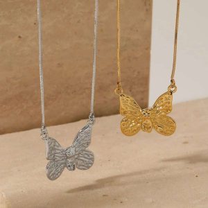 Ατσάλινο Κολιέ Με Πεταλούδα – Χρυσό