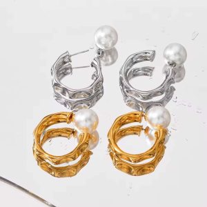 Ατσάλινα Σκουλαρίκια Σπείρα με Πέρλες – Ασημί