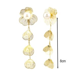 Μακριά Συρμάτινα Σκουλαρίκια από Stainless Steel με Πέρλα – Χρυσό