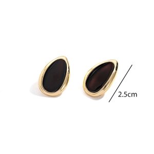 Σκουλαρίκια Ατσάλι Σταγόνα Μαύρο με Χρυσή Λεπτομέρεια – Καφέ