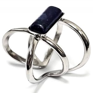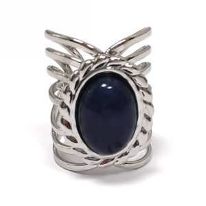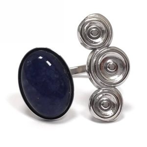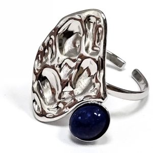 Δαχτυλίδι Πέτρα 316L, με Lapis σε χρώμα Ασημί