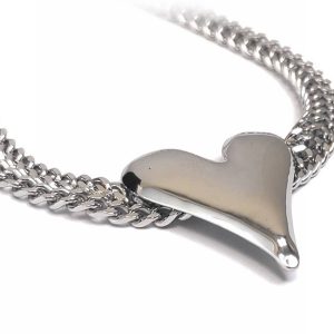 Κολιέ Ατσάλι 316L, αλυσίδα με καρδιά σε χρώμα Ασημί