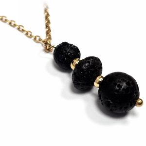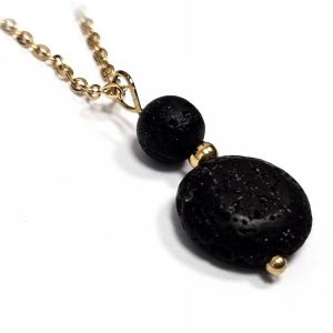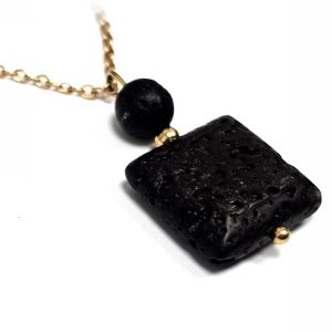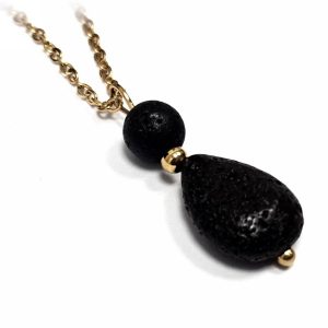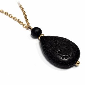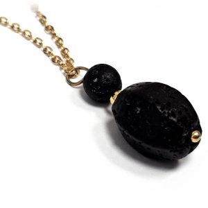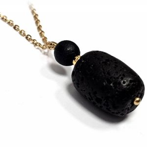 Κολιέ Πέτρα λάβα, ατσάλι σε χρώμα Χρυσαφί