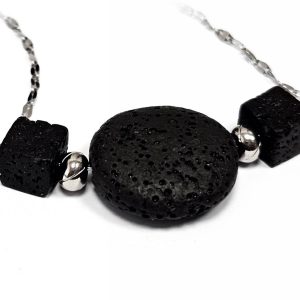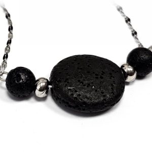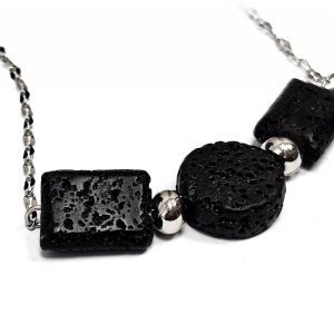 Κολιέ Πέτρα λάβα, ατσάλι σε χρώμα Ασημί