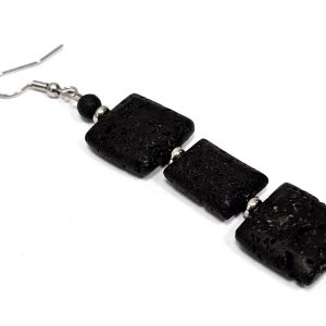 Σκουλαρίκια Πέτρα λάβα, ατσάλι σε χρώμα Ασημί