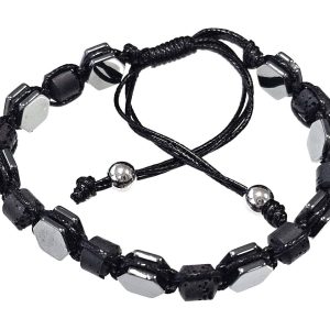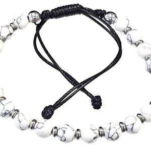 Αντρικό Βραχιόλι Πέτρα μακραμέ 6mm, με ημιπολύτιμες πέτρες και στοιχεία από ατσάλι και χρώμα Ασημί