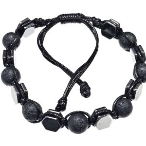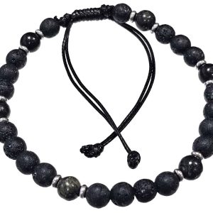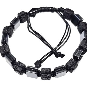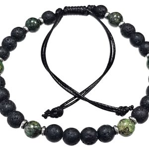 Αντρικό Βραχιόλι Πέτρα μακραμέ 8mm, με ημιπολύτιμες πέτρες και στοιχεία από αιματίτη