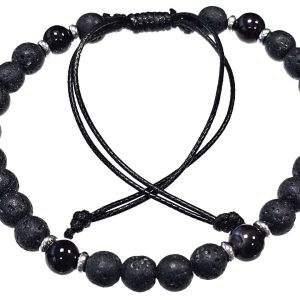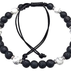 Αντρικό Βραχιόλι Πέτρα μακραμέ 6mm, με ημιπολύτιμες πέτρες και στοιχεία από ατσάλι