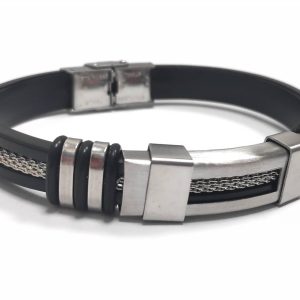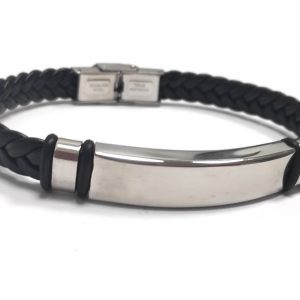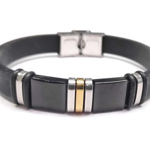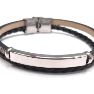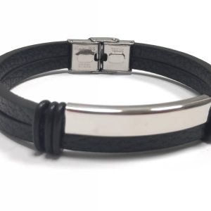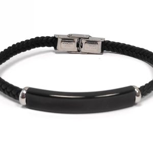 Αντρικό Βραχιόλι Ατσάλι 304, δέρμα PU σε χρώμα Μαύρο