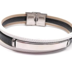 Αντρικό Βραχιόλι Ατσάλι 304, δέρμα PU σε χρώμα Ασημί