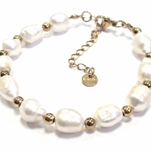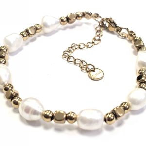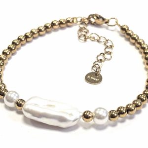 Βραχιόλι Ατσάλι 316L, αλυσίδα με μαργαριτάρι σε χρώμα Χρυσαφί