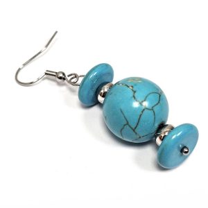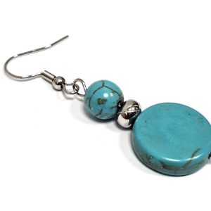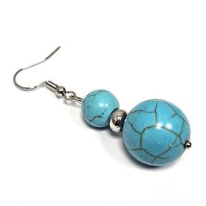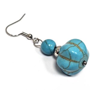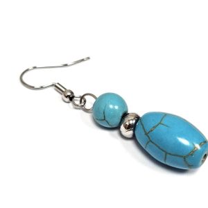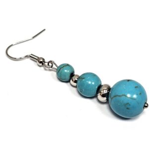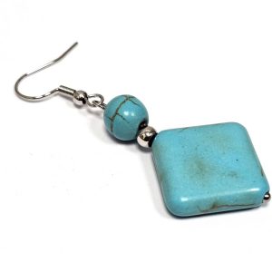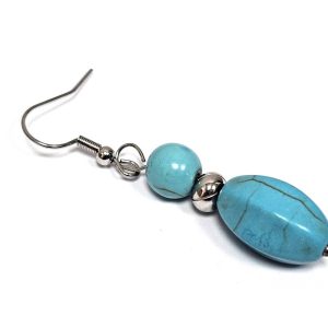 Σκουλαρίκια Πέτρα τυρκουάζ, ατσάλι σε χρώμα Ασημί