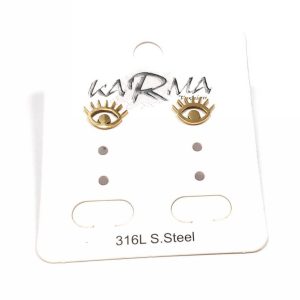 Σκουλαρίκια Ατσάλι 316L, μάτι σε χρώμα Χρυσαφί