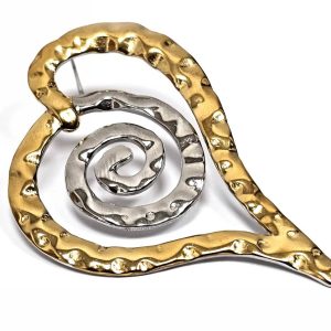 Σκουλαρίκια Ατσάλι 316L, καρδιά σε χρώμα Χρυσαφί και χρώμα Ασημί