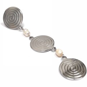 Σκουλαρίκια Ατσάλι 316L, σπείρα με μαργαριτάρι σε χρώμα Ασημί