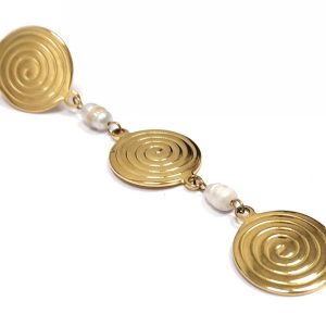 Σκουλαρίκια Ατσάλι 316L, σπείρα με μαργαριτάρι σε χρώμα Χρυσαφί