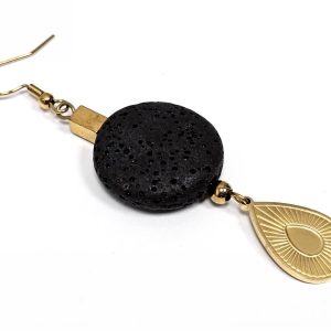 Σκουλαρίκια Πέτρα λάβα, ατσάλι σε χρώμα Χρυσαφί