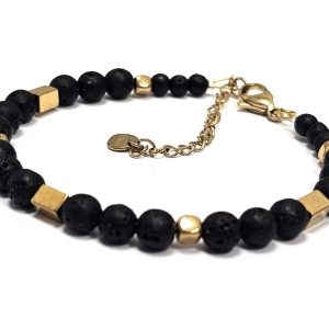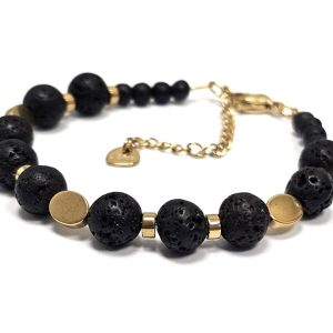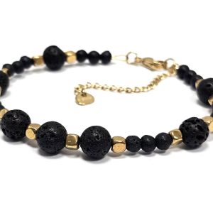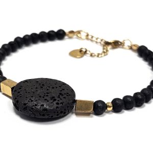 Βραχιόλι Πέτρα με λάβα και στοιχεία από αιματίτη σε χρώμα Χρυσαφί