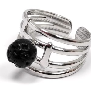 Δαχτυλίδι Πέτρα 316L, με λάβα σε χρώμα Ασημί