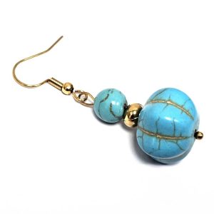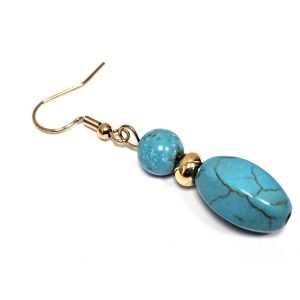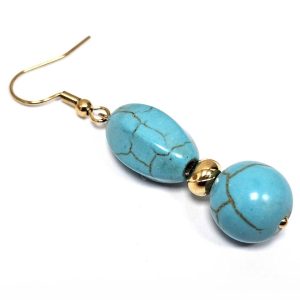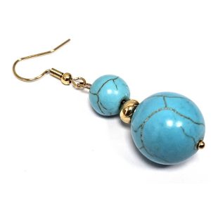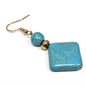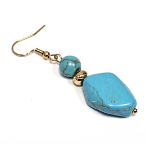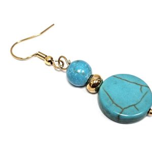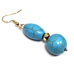 Σκουλαρίκια Πέτρα τυρκουάζ, ατσάλι σε χρώμα Χρυσαφί