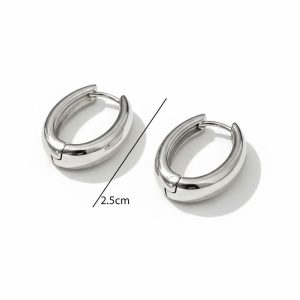 Ατσάλινα Σκουλαρίκια Κρίκοι Οβάλ Σχήμα και Γυαλιστερό Φινίρισμα Ασημί Χρώμα