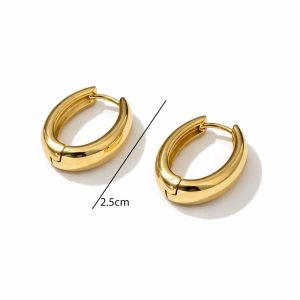 Ατσάλινα Σκουλαρίκια Κρίκοι Οβάλ Σχήμα και Γυαλιστερό Φινίρισμα Χρυσό Χρώμα