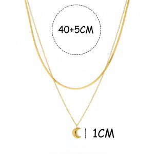 Ατσάλινη Διπλή Κολιέ Φεγγάρι Χρυσό Χρώμα