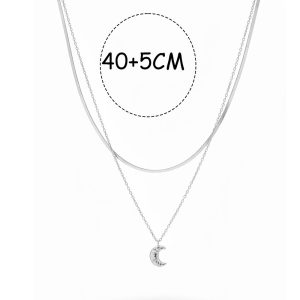 Ατσάλινη Διπλή Κολιέ Φεγγάρι Ασημί Χρώμα