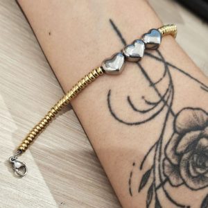 Ατσάλινο Βράχιολι Με Καρδιές Χρυσό Ασημί