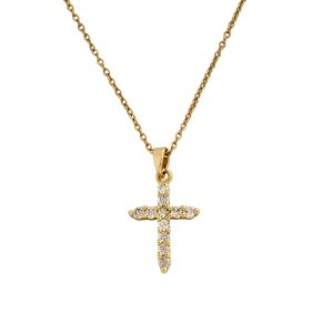 Μενταγιόν Σταυρός Με Γυαλιστερές Πέτρες Ασημί – Χρυσό