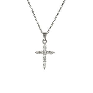 Μενταγιόν Σταυρός Με Γυαλιστερές Πέτρες Ασημί – Ασημί