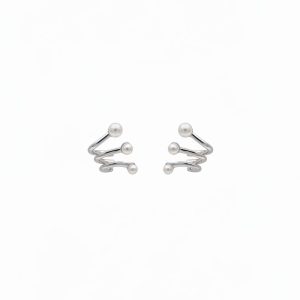 Ατσάλινα Σκουλαρίκια Σπείρα με Πέρλες – Ασημί