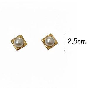 Ατσάλινα Σκουλαρίκια με Μαργαριταρένα Πέτρα – Χρυσό